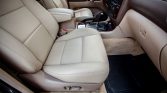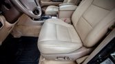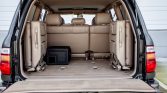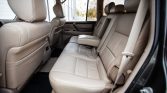 The cabin features seats trimmed in beige leather with matching carpets as well as a two-tone dashboard and door panels. Woodgrain trim aLents the door panels, center console, and center stack, and additional amenities include power-adjustable and heated front seats, removable third-row seats, air conditioning, a glass power-operated sunroof, electric windows, a Pioneer touchscreen head unit with Apple CarPlay, a backup camera, and an aftermarket subwoofer.