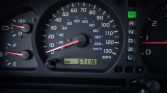 A four-spoke steering wheel frames a 130-mph speedometer, a 7k-rpm tachometer, and auxiliary gauges monitoring oil pressure, coolant temperature, voltage, and fuel level. The digital odometer indicates 57k miles.