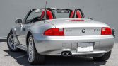 This 1999 BMW Z3 is finished in Arctic Silver Metallic over Tanin Red leather, and it is powered by a 2.8-liter inline-six paired with a five-speed manual transmission and a limited-slip differential. Equipment includes a power-retractable black soft top, front fog lights, heated and power-adjustable seats, cruise control, air conditioning, and a BMW Business CD stereo with Harman Kardon audio.