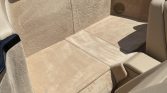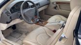 The cabin features seats upholstered in Saffron Nappa leather with matching door panels and carpets along with wood trim on the doors and center console. Equipment includes heated and power-adjustable seats with memory, automatic climate control, cruise control, a roll bar designed to automatically deploy in the event of a rollover, and power windows, locks, and mirrors.