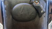 Optional 17″ wheels are fitted with colored Porsche-crest center crests that have visible wear, and they are wrapped in Cooper CSS Ultra tires up front and Bridgestone Potenza tires out back that show 2015 and 2018 date codes, respectively. Records indicate that the front suspension components were replaced in December 2019.