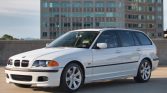 This 2000 BMW 323i Sport Wagon is finished in white over beige leather, and power is provided by a 2.5-liter M52 inline-six paired with a retrofitted six-speed manual transmission. Equipment includes window tint, automatic climate control, and a BMW Business CD stereo as well as 17″ allow wheels and heated front Sport seats as part of the Sport package.