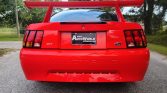 All 2000 Cobra R models were finished in Performance Red (ES) and feature a “power dome” hood, extended side skirts, a removable front splitter, and a rear wing. The front bumper cover is equipped with integrated brake cooling ducts, and the side-exit exhaust system includes dual polished tips ahead of each rear wheel.