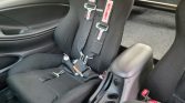 The cabin features manually-adjustable Recaro sport seats upholstered in Dark Charcoal fabric and fitted with Simpson racing harnesses. A roll bar and Nakamichi CD head unit have been added, and amenities include a B&M Ripper shifter with a leather shift knob, remote keyless entry, and power windows and door locks. To save weight, the Cobra R was not equipped with rear seats, an air-conditioning system, or cruise control from the factory.