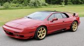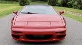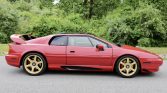 This 2000 Lotus Esprit V8 features a tan leather interior and is finished in black underneath a custom red vinyl wrap. Power is from a twin-turbocharged 3.5-liter V8 that was rebuilt in 2020 and is paired with a five-speed manual transaxle, and the car shows 52k miles. Equipment includes gold-finished alloy wheels, an ECU tune, air conditioning, an Alpine CD stereo, and upgraded dampers, springs, and suspension bushings.