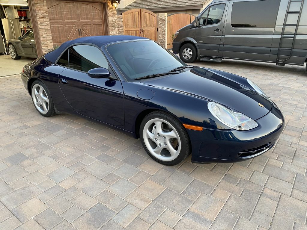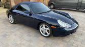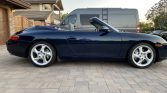This 2000 Porsche 911 Carrera 4 cabriolet is finished in metallic blue over gray leather and powered by a 3.4-liter flat-six driving all four wheels through a six-speed manual transaxle. Equipment includes a blue convertible top, xenon headlights, 18″ Turbo-look wheels, silver brake calipers, Porsche Stability Management, power-adjustable and heated front seats, automatic climate control, and a Porsche stereo system. The car was originally delivered to Porsche of Buffalo in New York, and spent time in Arizona…