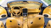 The car is finished in Ocean Blue Metallic (L3AZ) with a Metropol Blue convertible soft top. Exterior features include body-color side mirrors, stainless steel exhaust outlets, and a speed-activated rear spoiler.