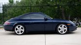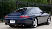 This 2000 Porsche 911 Carrera coupe is finished in blue over tan leather and is powered by a 3.4-liter M96 flat-six paired with a six-speed manual transaxle. Equipment includes eight-way power-adjustable front seats, automatic climate control, a CDR-220 stereo, stainless-steel tailpipes, Turbo-look 18″ wheels, a three-spoke steering wheel, and a sunroof.