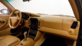 The cabin is trimmed in tan leather with a matching dashboard and carpets. Additional features include 8-way power-adjustable front seats with driver position memory, automatic climate control, cruise control, power windows and locks, a Becker CDR-220 CD stereo, and black floor mats.