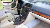 The cabin features seating surfaces upholstered in Lightstone leather with dark gray piping as well as burled wood veneer accents on the lower dashboard, center console, and door panels. Amenities include heated power-adjustable front seats, dual-zone automatic climate control, navigation, and an AM/FM/Cassette stereo with a remote-mounted CD changer. A replacement headliner was installed in June 2021.