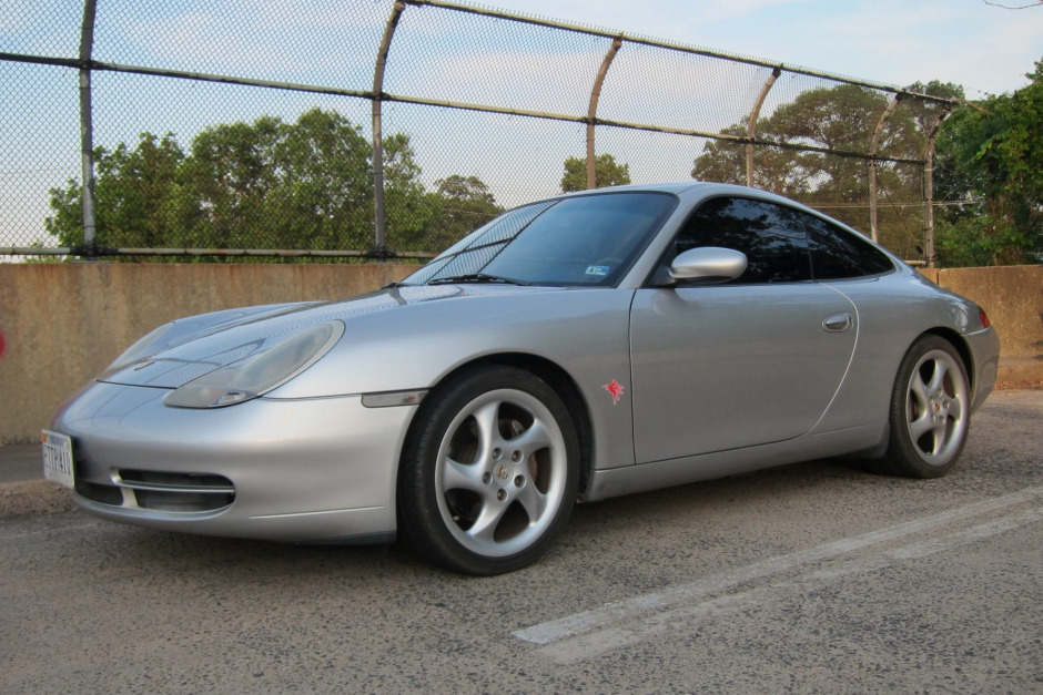 This 2001 Porsche 911 Carrera 4 coupe is finished in silver over black leather and is powered by a 3.4-liter flat-six paired with a six-speed manual transaxle and all-wheel drive. Equipment includes a speed-activated rear spoiler, 18″ wheels, an M030 suspension kit, automatic climate control, xenon headlamps with washers, a sunroof, and power-adjustable front seats. The seller acquired the car in 2012 and has added 8k of the 94k miles.