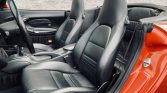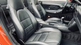 The cabin features seats upholstered in black leather with matching door panels and carpets. Equipment includes power-adjustable seats, cruise control, automatic climate control, a JVC Bluetooth stereo, the Technic Package, Porsche-branded floor mats, and power windows, locks, and mirrors.