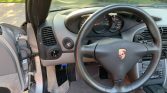 The cabin features high-back bucket seats upholstered in Graphite Grey partial leather along with a matching dashboard, door panels, carpets, and floor mats. Equipment includes automatic climate control, cruise control, power aLessories, folding cupholders, built-in CD storage, and a Porsche CDR-220 stereo.