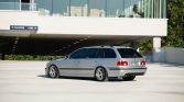 This 2002 BMW 540i Sport Wagon was acquired by the seller in 2017. The car is modified with a turbocharged and stroked 402ci LS2 V8 paired with a T56 six-speed manual transmission, an OS Giken limited-slip differential, 18″ AC Schnitzer multi-piece wheels, and FK coilovers as well as updated front brakes and exterior lighting. Additional equipment includes a power sunroof, air conditioning, technical graphite interior trim, E39 M5 Heritage Leather front seats, and a JL audio system.
