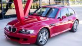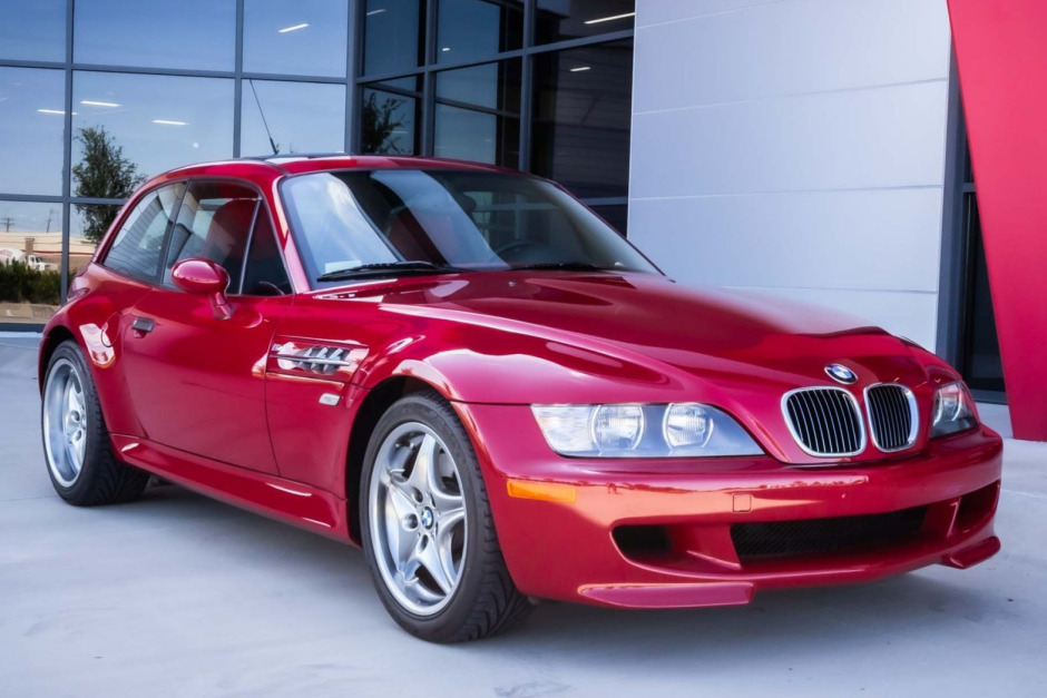 This 2002 BMW M Coupe is one of 41 examples produced from 2001-2002 in Imola Red over black and Imola Red Nappa leather, and power comes from a 3.2-liter S54 inline-six paired with a five-speed manual transaxle and a limited-slip differential. Additional equipment includes a sunroof, staggered-width 17″ Style 40 wheels, cruise control, heated seats, and a CD stereo hooked to a Harman Kardon audio system.