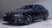This 2002 BMW M5 is finished in black over matching leather, and it is powered by a 4.9-liter V8 paired with a six-speed manual transmission and a limited-slip differential. Equipment includes an electric sunroof, 19″ Morr wheels, heated and power-adjustable front seats, dual-zone automatic climate control, cruise control, Park Distance Control, a trunk-mounted CD changer, and a dash-mounted infotainment screen. The car has resided in New Mexico and Arizona since new, and it was acquired by the…