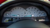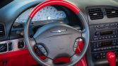 The leather-wrapped steering wheel frames a 160-mph speedometer and a 7k-rpm tachometer as well as gauges for coolant temperature and fuel level. The digital odometer indicates 30k miles.