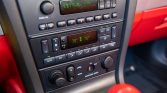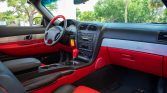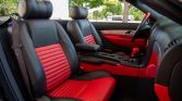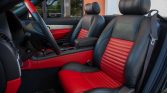 The cabin features power-adjustable seats trimmed in black leather with Torch Red inserts, and matching two-tone trim extends throughout the interior. Amenities include brushed-metal aLents, cruise control, dual-zone automatic climate control, and a factory stereo with a six-disc CD changer.