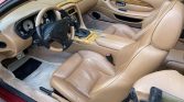 The cockpit is trimmed in Light Tan leather with matching carpets and elmwood aLents. Amenities include push-button start, heated power-adjustable front seats, automatic climate control, an analog clock, power aLessories, aluminum pedals, and a premium audio system with a trunk-mounted six-CD changer. Flaws include separating leather around the instrument cluster, warped windshield defrost vents, and cracks in the center console wood trim.