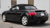 The car is finished in Raven Black Pearl and features a power-operated black soft top, rear spoiler, aluminum fuel filler cover, dual exhaust outlets, and aftermarket window tint.