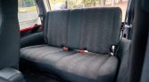 The cabin features patterned gray cloth upholstery on front bucket seats and rear bench, as well as a dark gray dash, door panels, and carpeting. Amenities include air conditioning, cruise control, a CD stereo, roll-up windows, and a locking center console. Auxiliary toggle switches have been added to the dash.