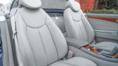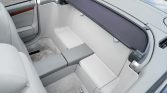 The cabin features seats upholstered in Grey leather (208A) with matching door panels and dark gray carpets as well as burred walnut trim. Amenities include cruise control, heated and power-adjustable front seats with memory, dual-zone automatic climate control, Keyless-Go, COMAND infotainment with navigation, Bose premium audio, a CD changer, and a wind deflector.