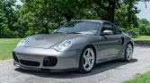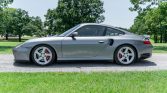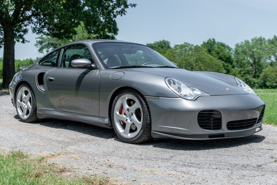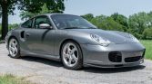 This 2003 Porsche 911 Turbo was first delivered to Jackie Cooper Imports of Tulsa, Oklahoma. The car is finished in Seal Grey over Graphite Grey full leather and is powered by a twin-turbocharged 3.6-liter flat-six paired with a six-speed manual transaxle and all-wheel drive. Equipment includes the X50 Turbo Power Kit, heated and power-adjustable front seats, bi-xenon headlights, stainless-steel exhaust pipes, and an aftermarket stereo.