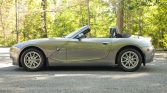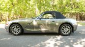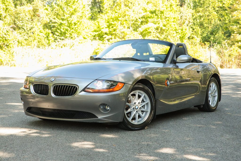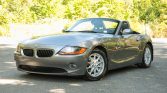 This 2004 BMW Z4 Roadster is finished in metallic gray over black leather and is powered by a 2.5-liter inline-six paired with a five-speed automatic transmission. Equipment includes a power-operated black soft top, power-adjustable seats, automatic climate control, cruise control, a BMW Business CD Hi-Fi stereo, and 16″ alloy wheels.