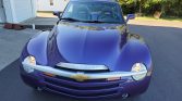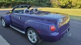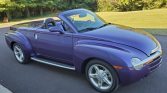 The SSR features styling inspired from the post-war Chevrolet Advance Design family of trucks and is built on a modified version of the GMT360 platform that is shared with the contemporary TrailBlazer SUV. This example is finished in purple and features a power-operated retractable hardtop, a removable body-colored tonneau cover, fog lights, integrated running boards, a receiver hitch, and a dual-outlet exhaust system.