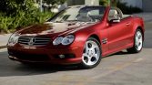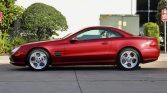 This 2004 Mercedes-Benz SL600 is finished in red over beige leather and is powered by a twin-turbocharged 5.5-liter V12 paired with a five-speed automatic transmission. Equipment includes a retractable hardtop, xenon headlights with washers, dual-zone automatic climate control, heated and ventilated seats, adaptive cruise control, and a Bose sound system.