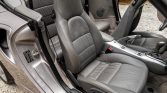 The cabin is upholstered in Graphite Gray leather and features power-adjustable seats with supple inserts. Equipment includes a wind deflector, a body-color center console, cruise control, aluminum trim, automatic climate control, Bose audio, and navigation. Wear is noted on the driver’s seat, and the glove box lock tumbler has been removed.