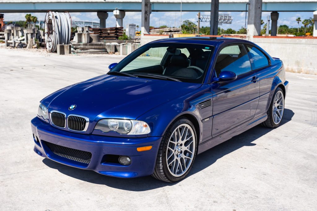This 2005 BMW M3 coupe is finished in blue over black leather and is powered by a 3.2-liter inline-six paired with a six-speed manual transmission and a limited-slip differential. Additional equipment includes the Competition Package, a BMW short shift kit, a navigation system, a Harman Kardon sound system, power-adjustable front sport seats with memory, bi-xenon headlights, and 19″ M cross-spoke wheels. The car was first registered in Florida and spent time in Pennsylvania and Maryland prior to its acquisition by the seller in October 2020. Work performed since 2019 has included the replacement of the rod bearings, VANOS hubs, oil filter housing, and alternator in addition to both rear shocks, the driveshaft coupler and the right-front wheel hub and bearing. Service in August 2021 consisted of replacing the differential bushings, rear trailing arm bushing, subframe bushing, and rear control arm bearing.
