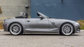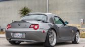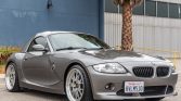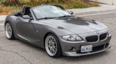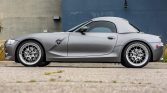 This 2005 BMW Z4 is finished in Sterling Grau Metallic over black Oregon leather and is powered by a 2.5-liter inline-six paired with a five-speed automatic transmission. Equipment includes a power-operated black soft top, xenon headlights, power-adjustable heated seats, and automatic climate control.