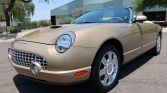 This 2005 Ford Thunderbird was purchased new by the owner of Weber-Harris Ford L-M Inc. in Meadville, Pennsylvania, and reportedly remained in their collection until the seller‘s acquisition in June 2021. The car is finished in Bronze Metallic over Light Sand leather and is powered by a 3.9-liter V8 paired with a five-speed automatic transmission. Features include a power-operated convertible top, a body-color removable hardtop, 17″ wheels, heated and power-adjustable seats, dual-zone automatic climate control, and an Audiophile Sound System.