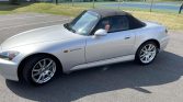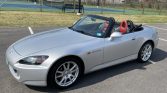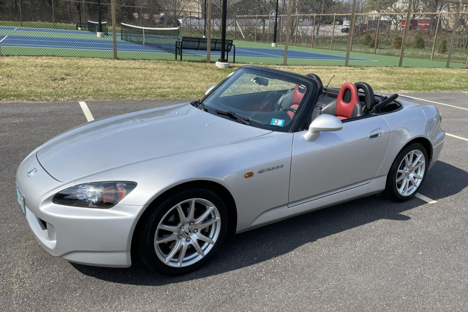 This 2005 Honda S2000 is finished in silver over red and black leather and powered by a 2.2-liter inline-four paired with a six-speed manual transmission. Equipment includes a black convertible top, a limited-slip differential, xenon headlights, air conditioning, cruise control, and a factory CD stereo. Maintenance under current ownership has consisted of a valve adjustment, fluid service, and replacement of the spark plugs and ignition coils.