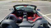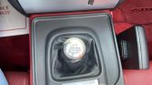 The cabin features seating upholstered in red and black leather joined by a black dashboard and red carpets. Amenities include push-button ignition, air conditioning, cruise control, and a factory CD stereo.