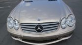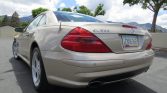 This 2005 Mercedes-Benz SL500 is finished in Travertine Beige Metallic over beige leather and is powered by a 5.0-liter V8 paired with a seven-speed automatic transmission. Equipment includes staggered-width 18″ AMG Designo-style wheels, a power-folding hardtop, bi-xenon headlights, Active Body Control suspension, heated and ventilated multi-contour seats, dual-zone automatic climate control, front and rear parking sensors, and navigation. The car was first registered in Arizona and has since spent time in Oregon and Montana. The seller acquired it in 2019 and has subsequently replaced the battery and changed the oil and filter.