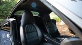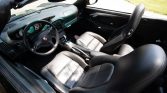 The cabin is upholstered in black full leather and features heated power-adjustable front seats with supple leather inserts. Amenities include Porsche-logo floor mats, automatic climate control, navigation, a wind deflector, and a Bose sound system with a trunk-mounted CD changer.