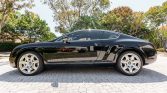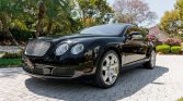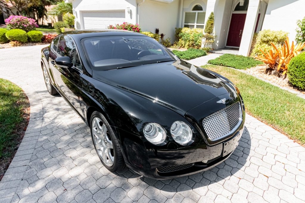 …This 2006 Bentley Continental GT is powered by a twin-turbocharged 6.0-liter W12 driving all four wheels via a six-speed automatic transmission and is finished in Beluga Black over a matching diamond-stitched leather interior. The Mulliner package added two-piece 20″ wheels as well as unique interior trim, and other equipment includes xenon headlights, a mesh chrome grille, heated and massaging front seats, a rear-view camera and parking sensors, navigation, drilled alloy pedals, and dual-zone automatic climate control.