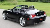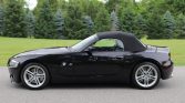 The car is finished in Black Sapphire Metallic (475) and features a power-retractable black soft top. Additional exterior equipment includes xenon headlamps with washers, M fender and trunk badges, and quad exhaust outlets with polished finishers.