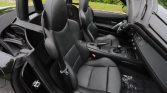 The cabin features seats upholstered in black Nappa leather (LSSW) with matching door panel inserts and carpets. Carbon-look leather trim aLents the dashboard and center console, and additional equipment includes a Harman Kardon Logic 7 CD stereo, automatic climate control, cruise control, roll hoops, power-adjustable seats, and power windows, mirrors, and locks.