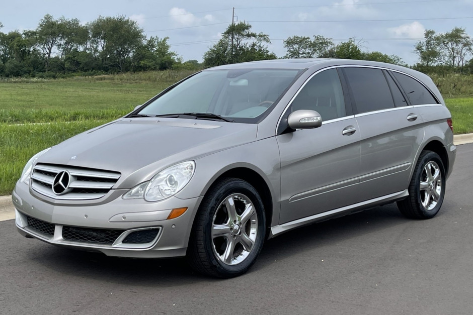 This 2006 Mercedes-Benz R500 is finished in Cubanite Silver over a gray interior and is powered by a 5.0-liter V8 paired with a seven-speed automatic transmission and 4Matic all-wheel drive. Equipment includes Airmatic suspension, an adaptive damping system, Parktronic parking sensors, 19” chrome wheels, a sliding sunroof, heated front seats, dual-zone automatic climate control, and COMAND infotainment with navigation. The car was sold new by Mercedes-Benz of Lynnwood, Washington, and was recently acquired by the seller.