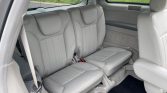 The interior houses three rows of seating trimmed in gray imitation leather upholstery with matching door panels and wood trim on the steering wheel, dashboard, and doors. Amenities include heated front seats, dual-zone automatic climate control, a Hardon Kardon sound system, and second-row captain’s chairs.