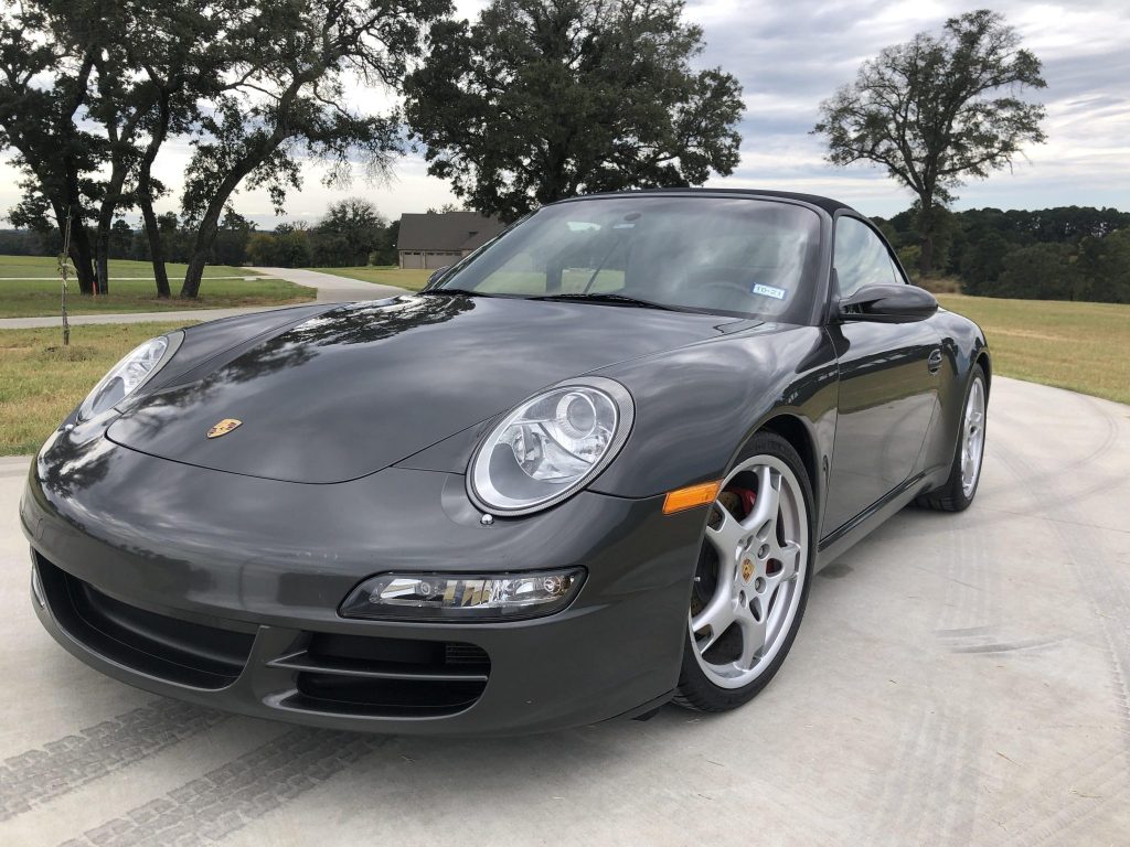 This 2006 Porsche 911 Carrera S cabriolet is powered by a 3.8-liter flat-six with a six-speed manual transaxle and is finished in Slate Grey Metallic over black leather. Features include a black convertible top, power-adjustable and heated front seats, parking sensors, PCM with navigation, and 19″ wheels. Work under current ownership has included replacement of the tires, convertible top hydraulic cylinders, instrument cluster, and battery.