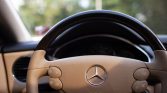 The interior is trimmed in brown leather and features heated front seats with memory as well as COMAND with navigation, an electric sunroof, a rear window shade, a premium audio system, and automatic climate control.