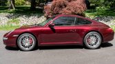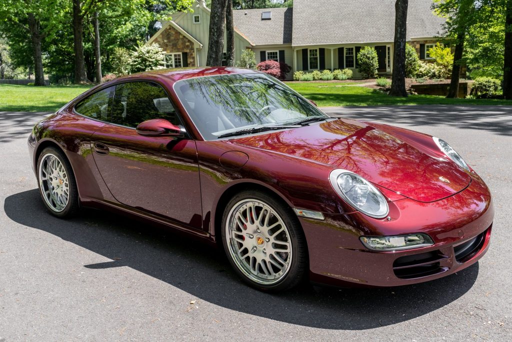 This 2007 Porsche 911 Carrera S coupe was acquired out of California in 2011 by the seller, who has added 3k of the 16k miles. The car is finished in Carmon Red Metallic over Stone Grey leather and is powered by a 3.8-liter flat-six paired with a six-speed manual transaxle. Equipment includes the Sport Chrono Package Plus, a sport shifter, automatic climate control, navigation, a Bose audio system, a six-disc CD changer, heated seats, and aftermarket 19″ wheels.