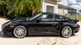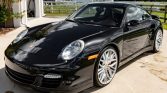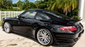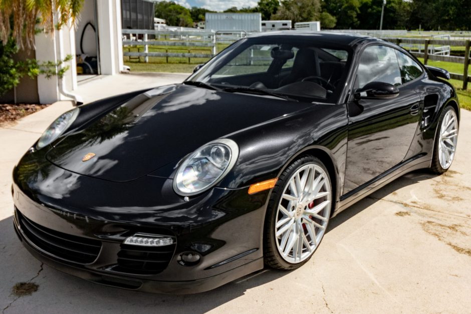 This 2007 Porsche 911 Turbo coupe is finished in Basalt Black Metallic over Special Cocoa leather and powered by a twin-turbocharged 3.6L flat-six driving all four wheels through a five-speed Tiptronic S automatic transaxle. Equipment includes the Sport Chrono Plus Package, bi-xenon headlights, 20″ Road Force wheels, a sunroof, heated and adaptive front sport seats, Porsche Communication Management with navigation, aftermarket Bluetooth integration, and a Bose audio system.