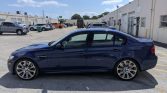 This 2008 BMW M3 sedan is finished in Interlagos Blue Metallic over black leather and powered by a 4.0-liter V8 paired with a six-speed manual transmission and a limited-slip differential. Equipment includes a sunroof, power-adjustable front seats, carbon-look leather trim, automatic climate control, forged 19″ alloy wheels, Comfort ALess, Dynamic Stability Control, Electronic Damper Control, and a factory CD stereo with navigation.