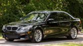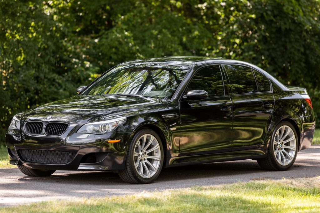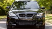 This 2008 BMW M5 is finished in black over black leather and is powered by a 5.0-liter S85 V10 paired with a six-speed manual transmission and a limited-slip differential. Features include 19″ alloy wheels, multi-function front seats with active seat-width adjustment, Park Distance Control, adaptive xenon headlights, navigation, and a head-up display. The car was sold new from Nick Alexander Imports of Los Angeles, California, and was reacquired by BMW of North America in 2009 after a customer satisfaction claim. The car was then sold at auction to a dealer in Illinois and purchased by the seller’s son in December 2009. It was acquired by the seller and relocated to Tennessee in January 2017. Modifications consist of a K&N air intake system and black-finished kidney grilles, and service completed under current ownership is said to have included replacing the alternator, battery, rear pinion seal, tires, and ABS pump and controller.