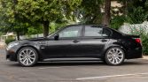 The car is finished in Black Sapphire Metallic and features adaptive xenon headlights with washers, front fender vents, Park Distance Control (PDC), a glass sunroof, a rear deck spoiler, and polished quad exhaust finishers.